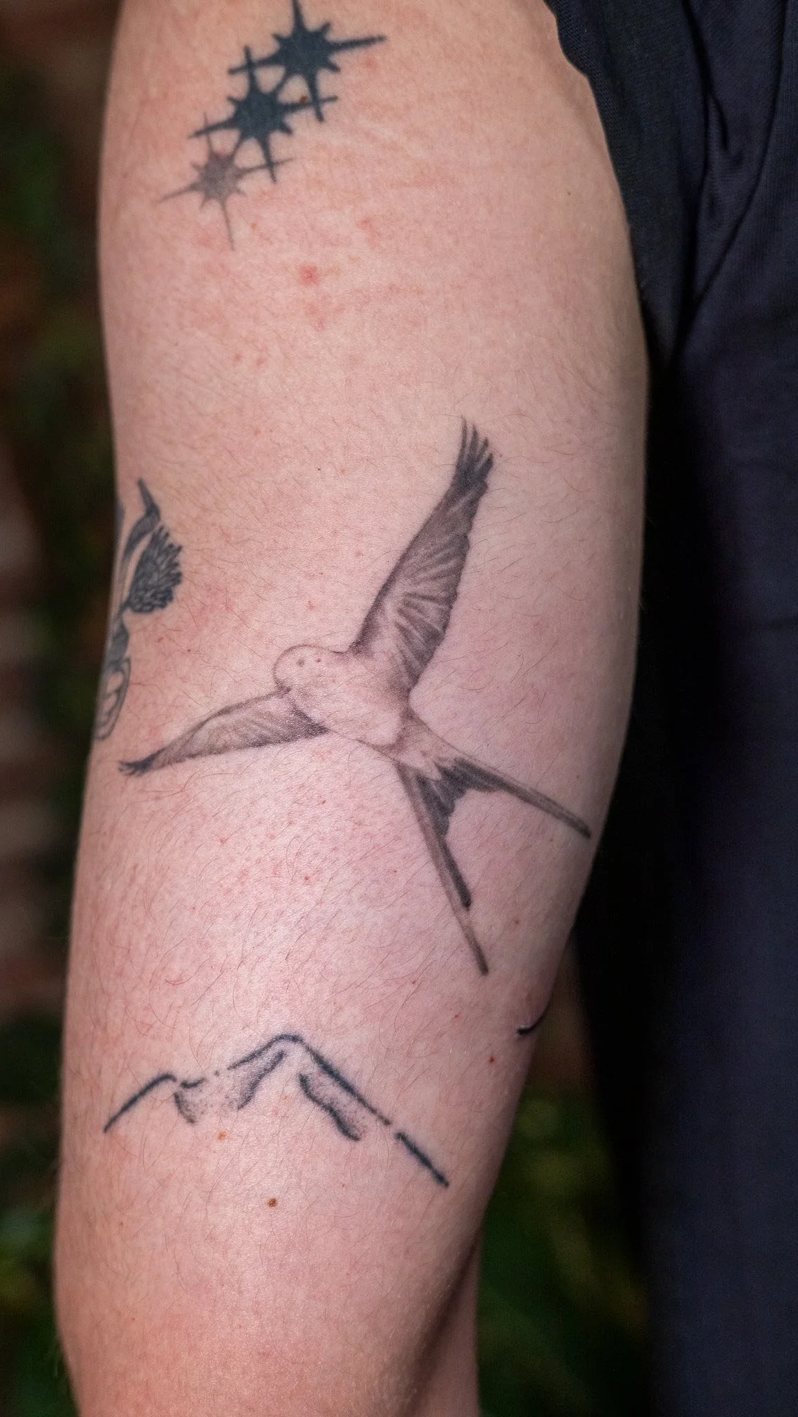 Besides tattooing, I like going to goth parties and concerts. I'm deeply connected to my indigenous ancestry and love nature, especially birds and plants.